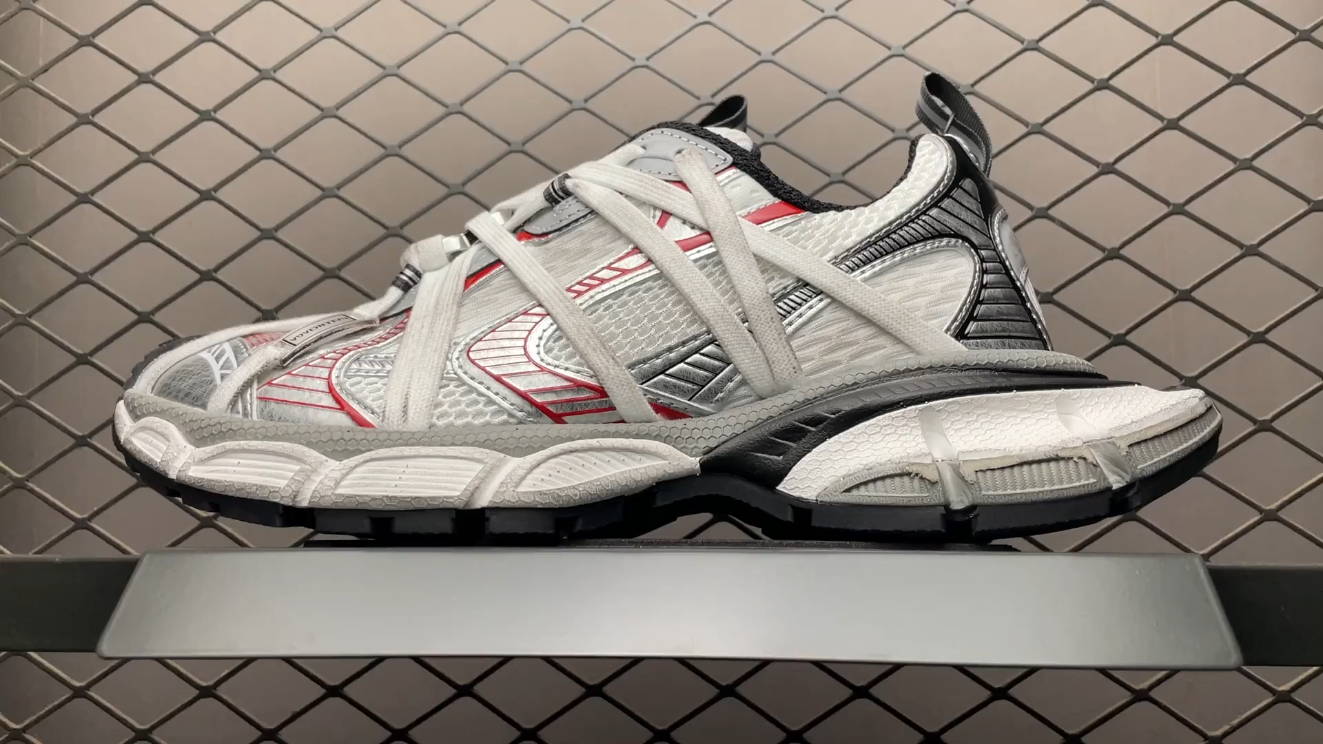 BALENCIAGA 3XL Extreme Laces B Sneaker "Grey/Red/Silver"(825601W3XCH1161)