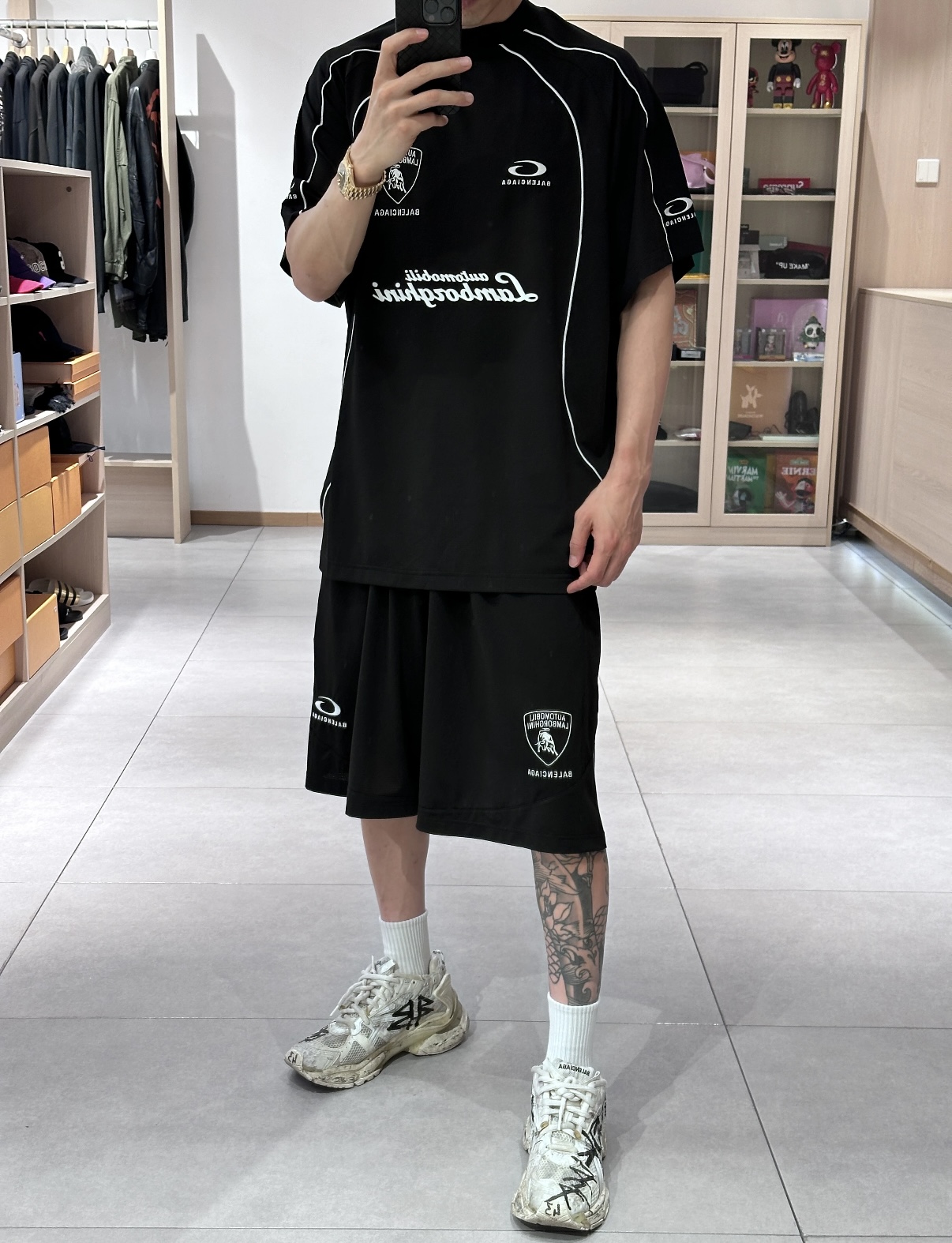BALENCIAGA Automobili Lamborghini Men's Baggy Shorts "Black" (777709TSVU31000)