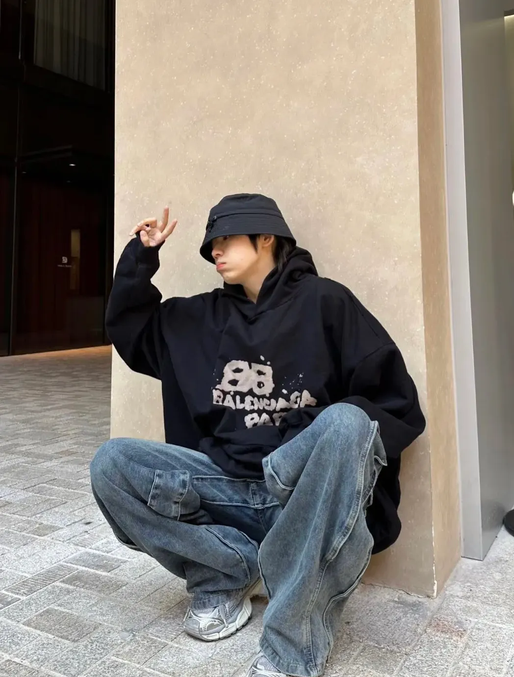 バレンシアガ 手描き BB アイコン パーカー ラージフィット 'ブラック'