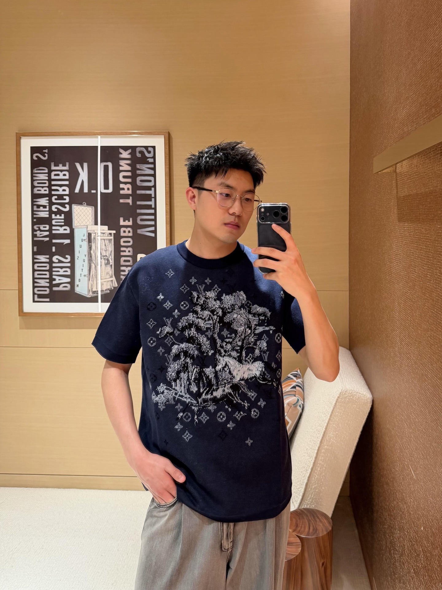 LOUIS VUITTON short-sleeved jacquard crew neck shirt(1AJBVD)