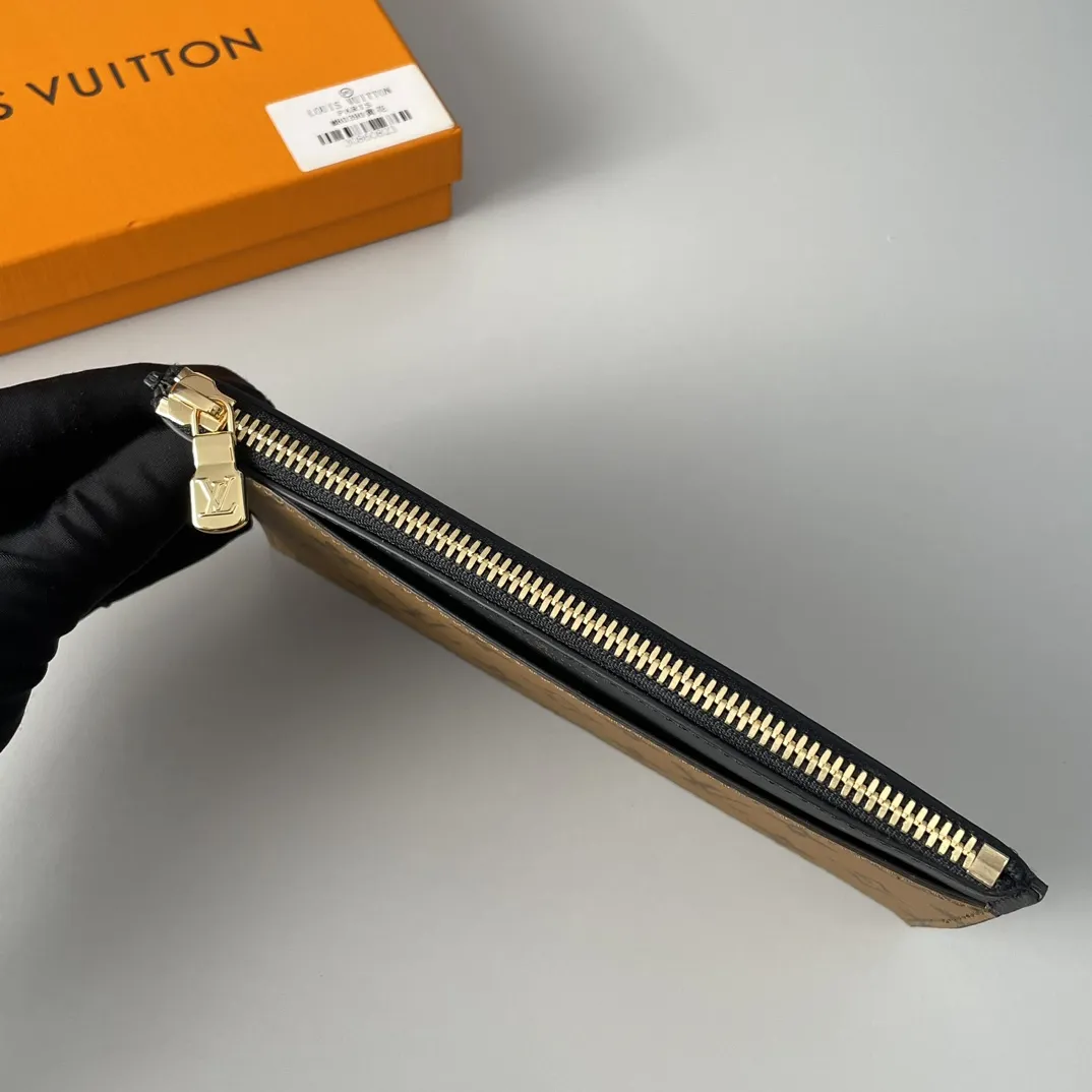 手持ちとしても、バッグインバッグとしても使用できる、シックですっきりとしたデザインが特徴の「スリム パース」。モノグラム・キャンバスとなめらかなカウハイドレザーを組み合わせ、ゴールドカラーの「Louis Vuitton」シグネチャーをエンボス加工で施しました。ファスナー開閉式のメインコンパートメントに加え、外側にはフラットポケット、2つのコンパートメント、6つのカードスロットを備えています。
