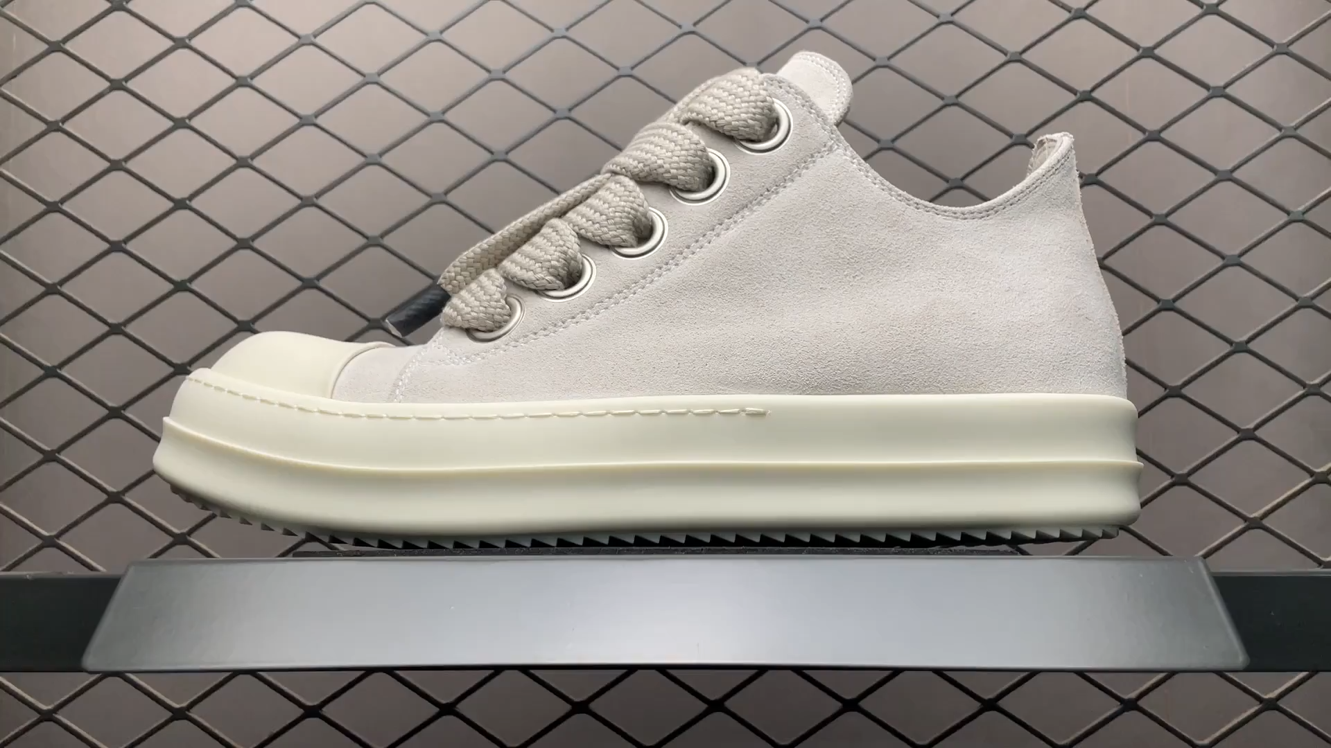 RICK OWENS "JUMBOLACED LOW SNEAKERS" Jumbo lace suede low-cut sneakers (RU01E5893LVSW2-4111)