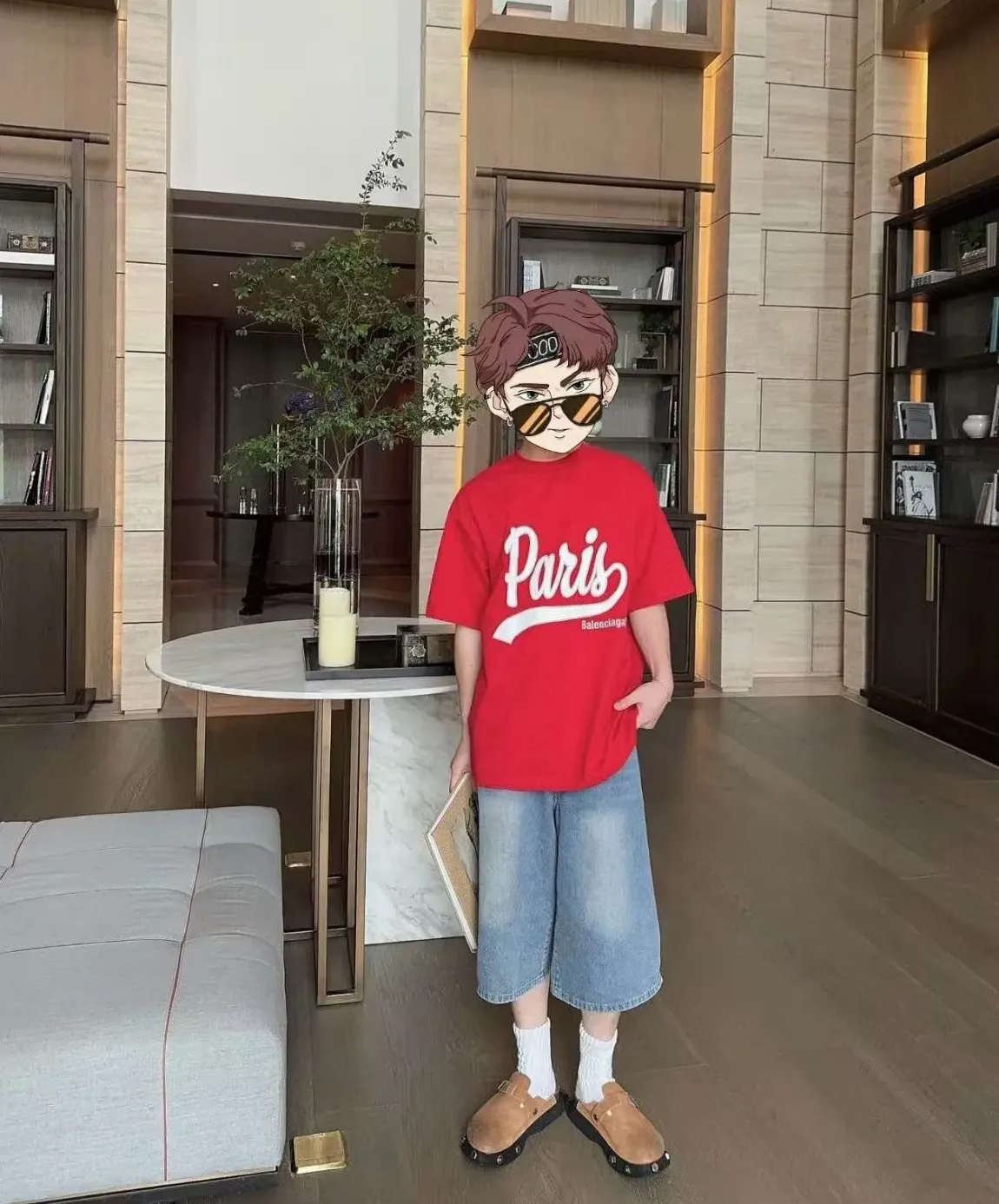 バレンシアガ エンジョイ パリ T シャツ オーバーサイズ ヴィンテージ ジャージ「フェイデッド レッド」