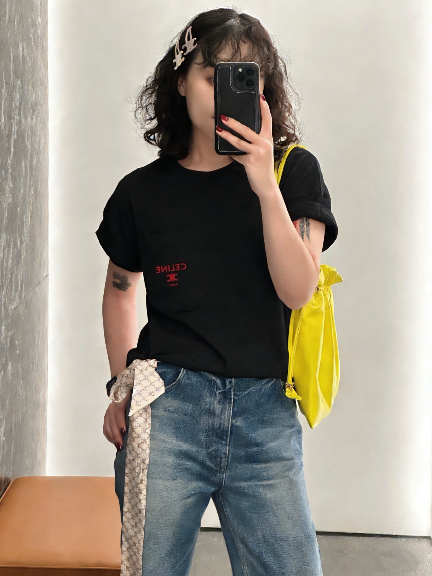 CELINE Tシャツ/コットンニットウェア - ブラック/カーマイン