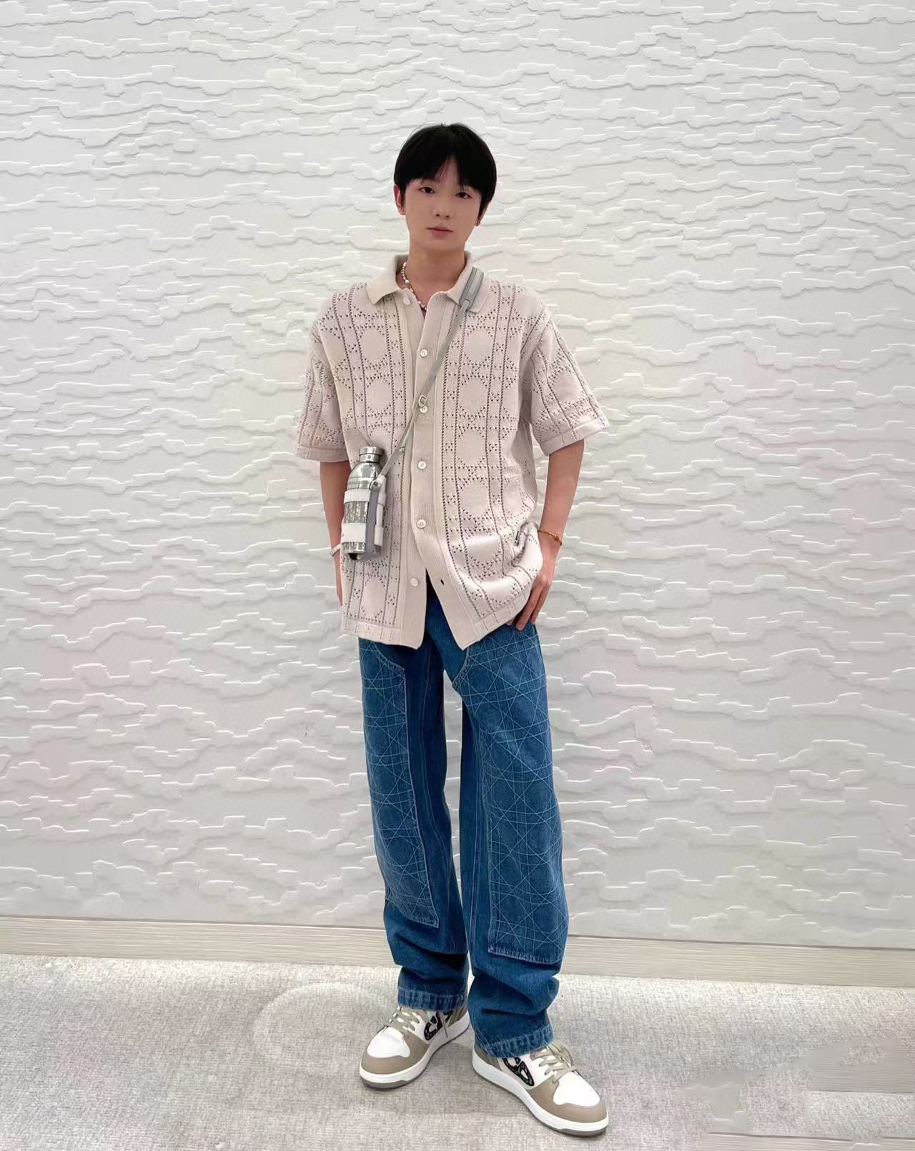 DIOR Short sleeve shirt in cotton and cashmere(493M530AT840-C080)