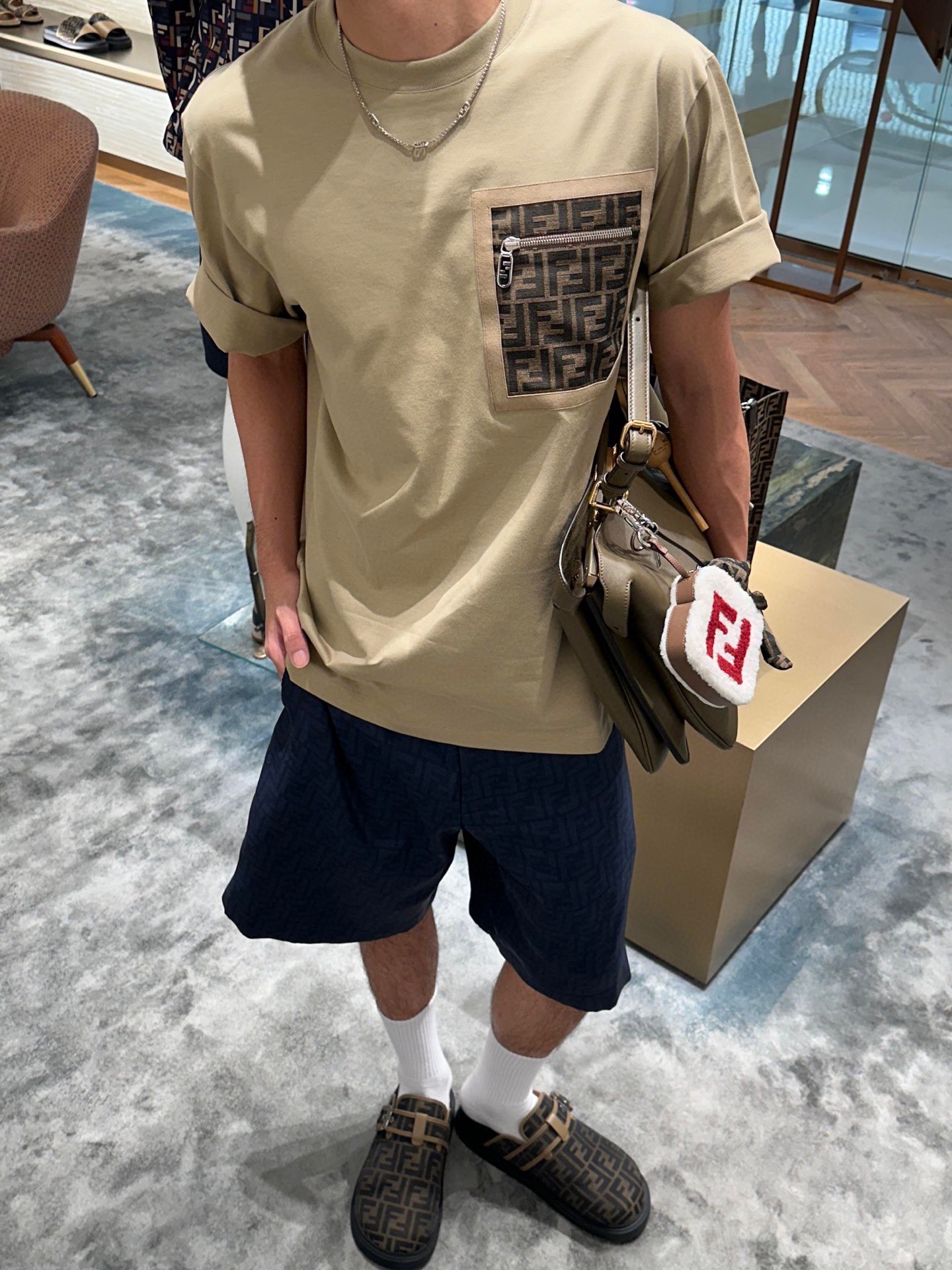 フェンディ メンズ バミューダ ショートパンツ FF シルク「ブルー」