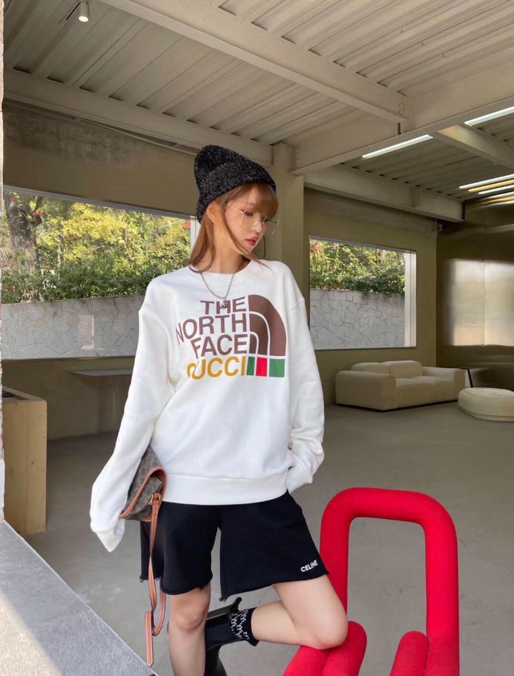 グッチ x ザ・ノース・フェイス レディース コットン オーバーサイズ スウェットシャツ ホワイト