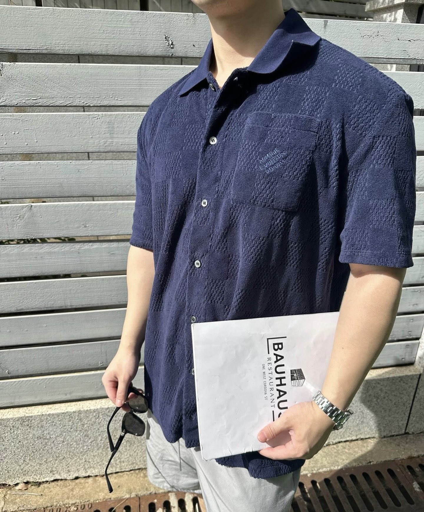 LOUIS VUITTON ダミエ フレンチテリー 半袖コットンブレンドシャツ