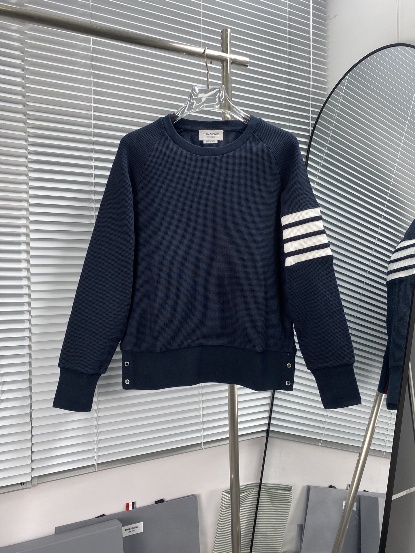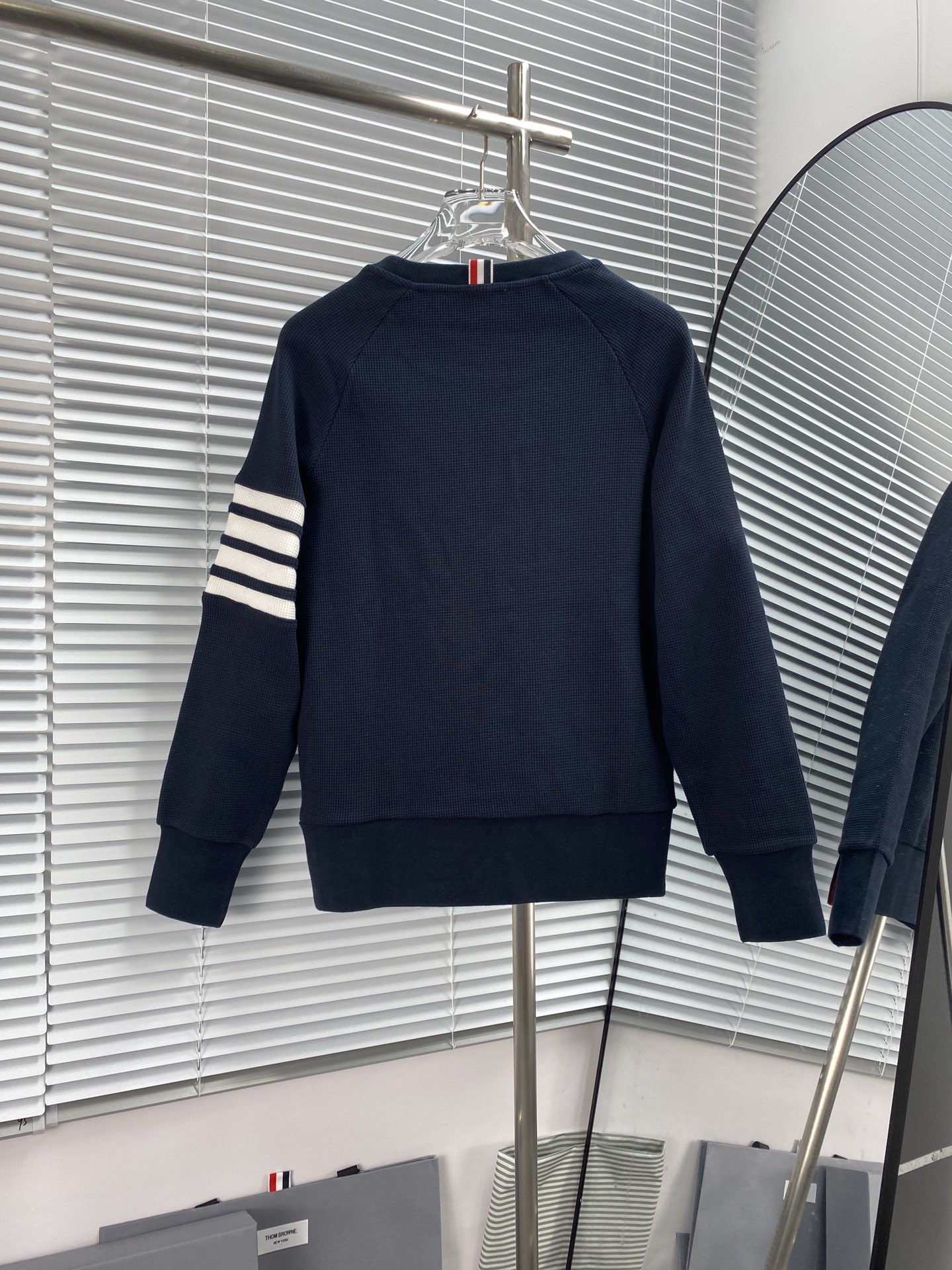 トム ブラウン 4BAR ラグランスリーブ ワッフル クルースウェット ネイビー